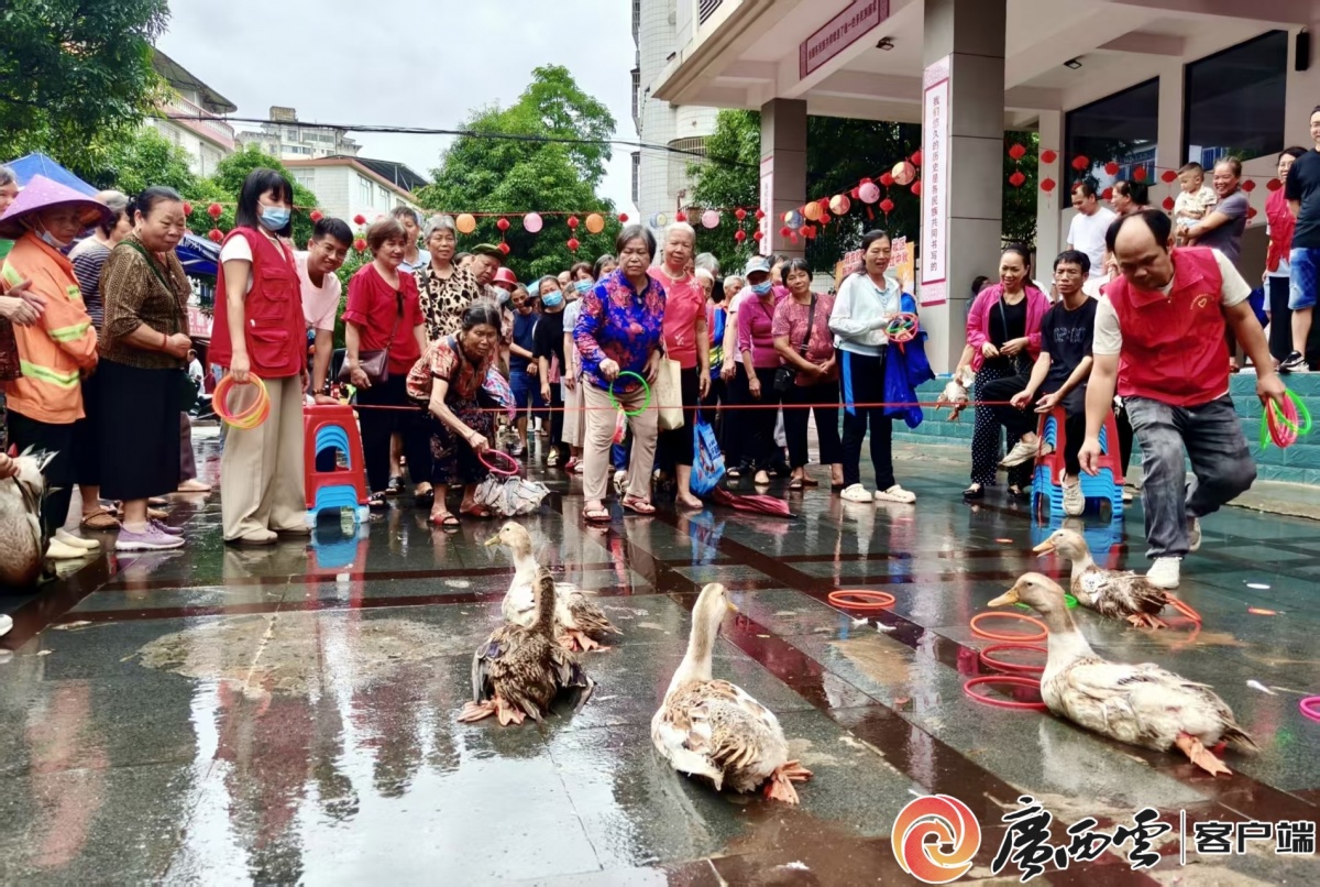 海底捞月、蒙眼敲锣、套圈鸡鸭等趣味游园活动成为全场焦点。男女老少齐上阵,在游戏享亲子之乐、邻里之和。为筹备本次活动,社区提前一周在各个居民群中发布活动通知,30余名志愿者踊跃报名维持秩序、分发奖品。“奖品以鸡鸭、生活用品为主,强调‘居民用得上’的属性。”该社区党委书记章丰硕介绍。